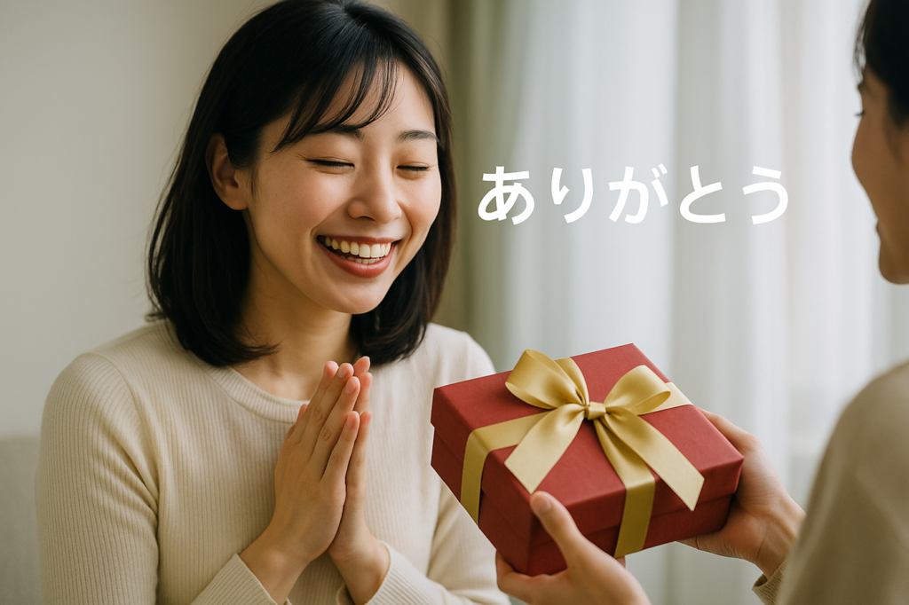 プレゼントをもらったとき、「ありがとう」と言います。