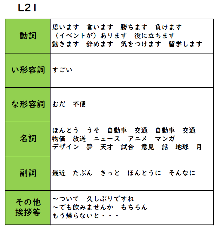 普通形をひとつずつ確認しながら進める。