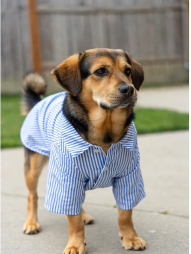 服を着ている犬を見ました。