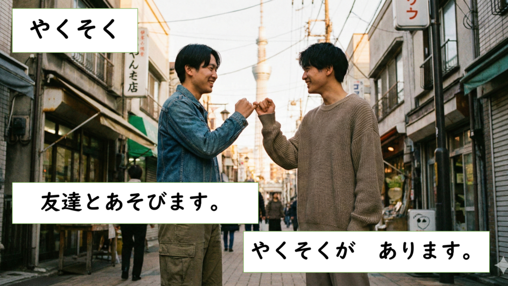友達とあそびます。約束があります。