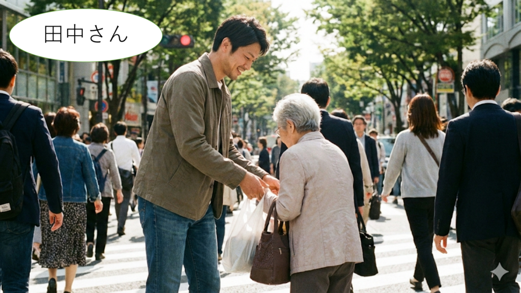 田中さんは親切だし、ハンサムだし、それに背が高いです。