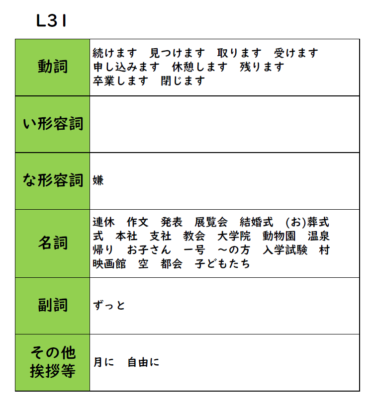 みんなの日本語 31課 教案 導入 例文 イラスト 日本語 X Facebook はてブ Pocket LINE コピー 2026.04.222026.04.30 《学習目標》 できるようになること ・自分の意思や計画していることが述べられる。 ・予定が説明できる。 目次 新出語彙意向形<意向形>と思っていますまだ~ていません~つもりです~予定です 新出語彙 ★ポイント 意向形 <意向形>と思っています まだ~ていません ~つもりです ~予定です