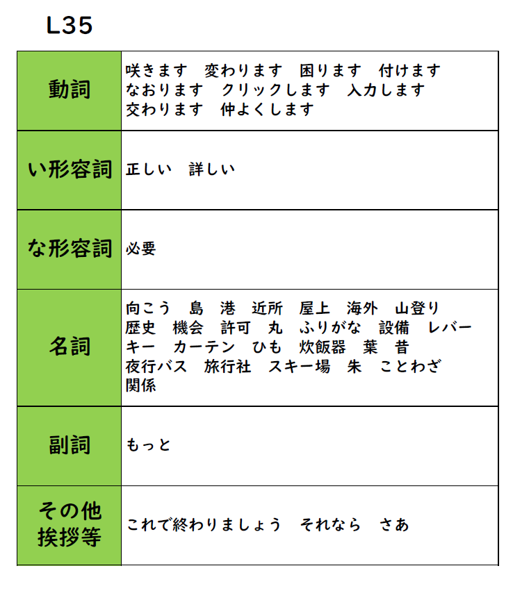 みんなの日本語 35課 教案 導入 例文 イラスト 日本語 X Facebook はてブ Pocket LINE コピー 2026.04.222026.04.30 《学習目標》 できるようになること ・ある事柄が実現するために必要な仮定条件を述べることができる。 ・ある条件下での判断を述べたり、助言や指示を求めたりすることができる。 目次 新出語彙~ば(動詞)、~~ければ(い形容詞)、~~なら(な形容詞/名詞)、~疑問詞~ばいいですか~なら(名詞)、~ 新出語彙 ★ポイント ~ば(動詞)、~ ~ければ(い形容詞)、~~なら(な形容詞/名詞)、~ 疑問詞~ばいいですか ~なら(名詞)、~